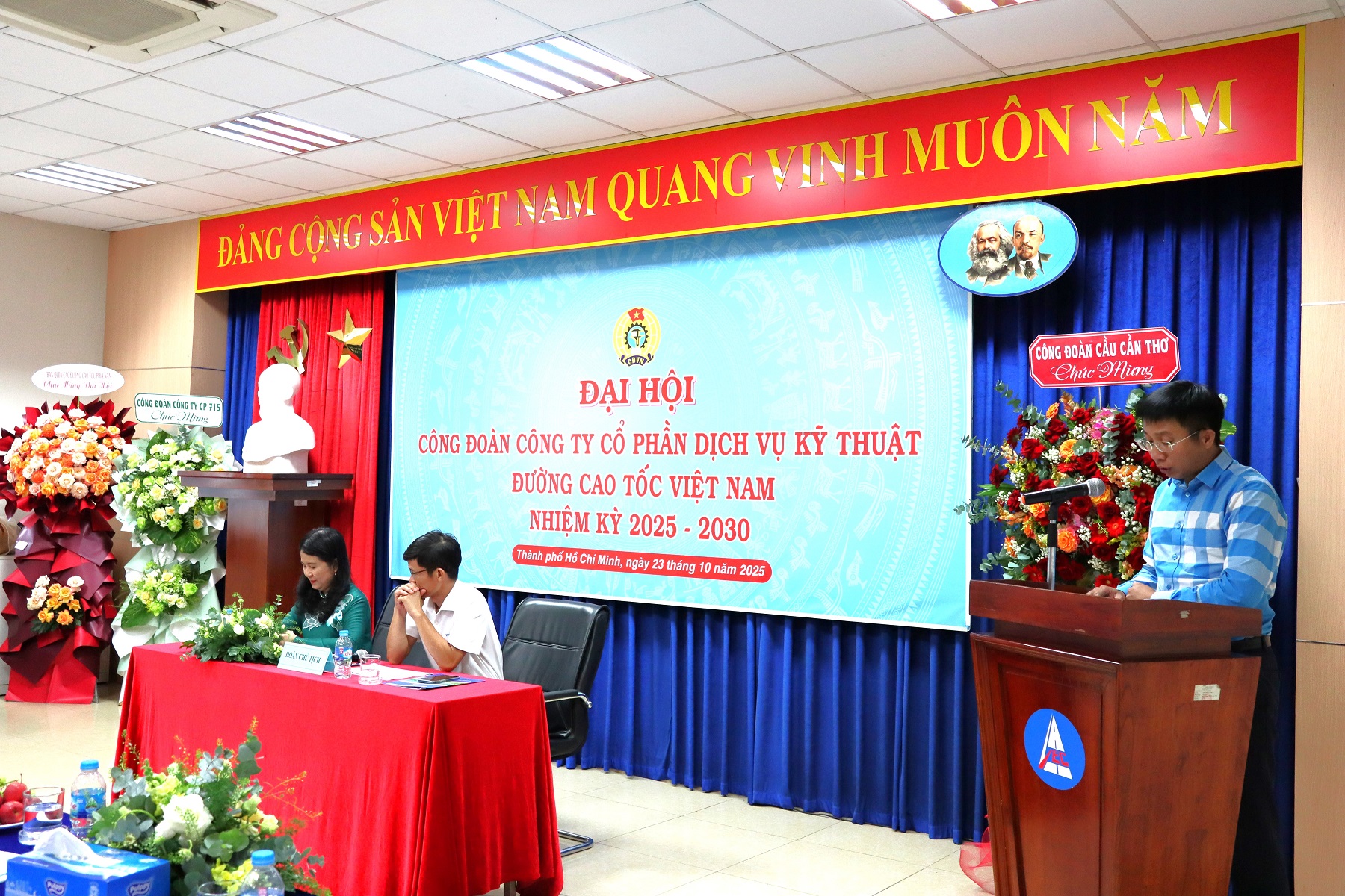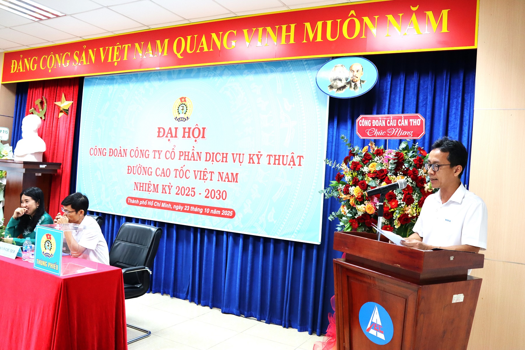 (24/10/2025)Ngày 23/10/2025, Công đoàn Công ty Cổ phần Dịch vụ Kỹ thuật đường cao tốc Việt Nam (Công đoàn VEC E) đã long trọng tổ chức chương trình Đại hội Công đoàn nhiệm kỳ 2025 – 2030 nhằm tổng kết, đánh giá kết quả hoạt động của Công đoàn trong thời gian qua, quyết định phương hướng, nhiệm vụ trọng tâm trong thời gian tới đồng thời để bầu Ban chấp hành (BCH) Công đoàn nhiệm kỳ 2025 – 2030.
