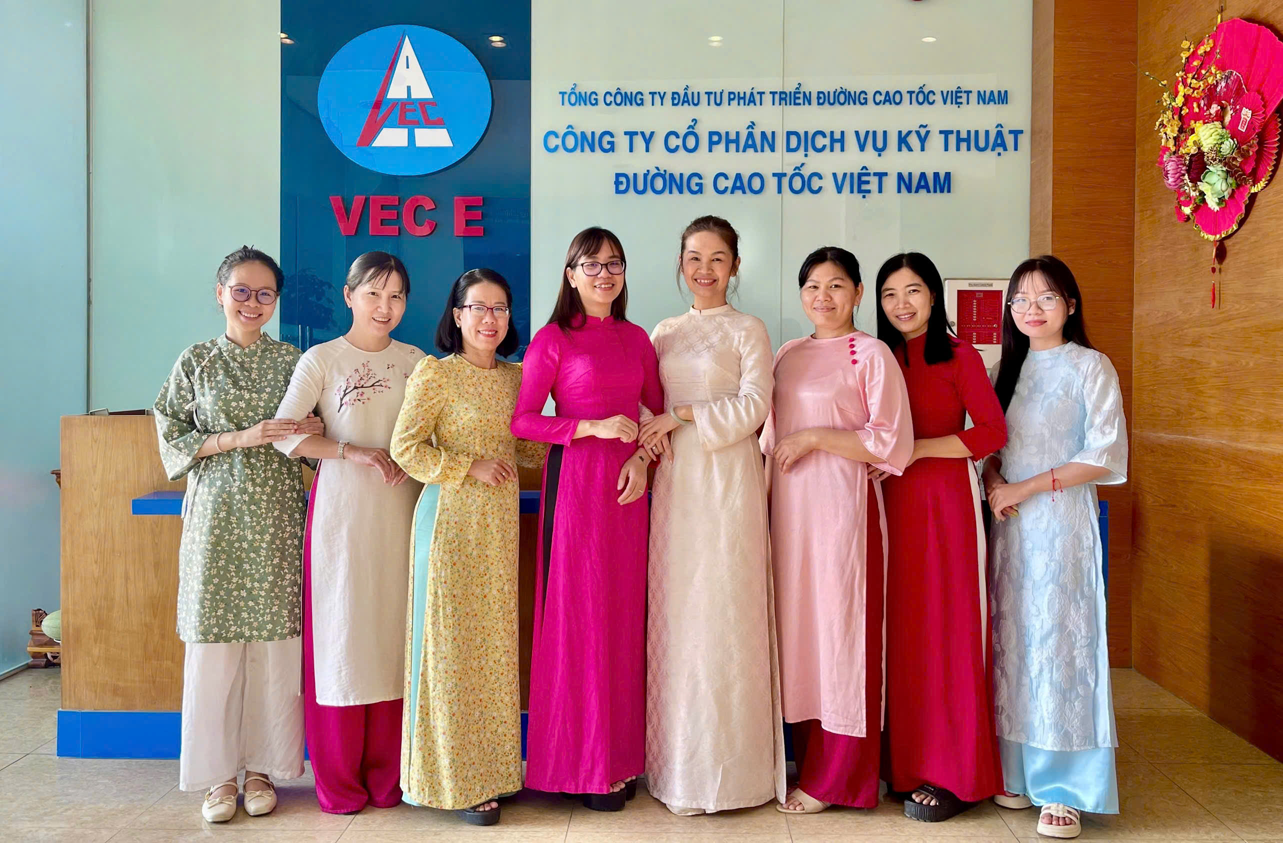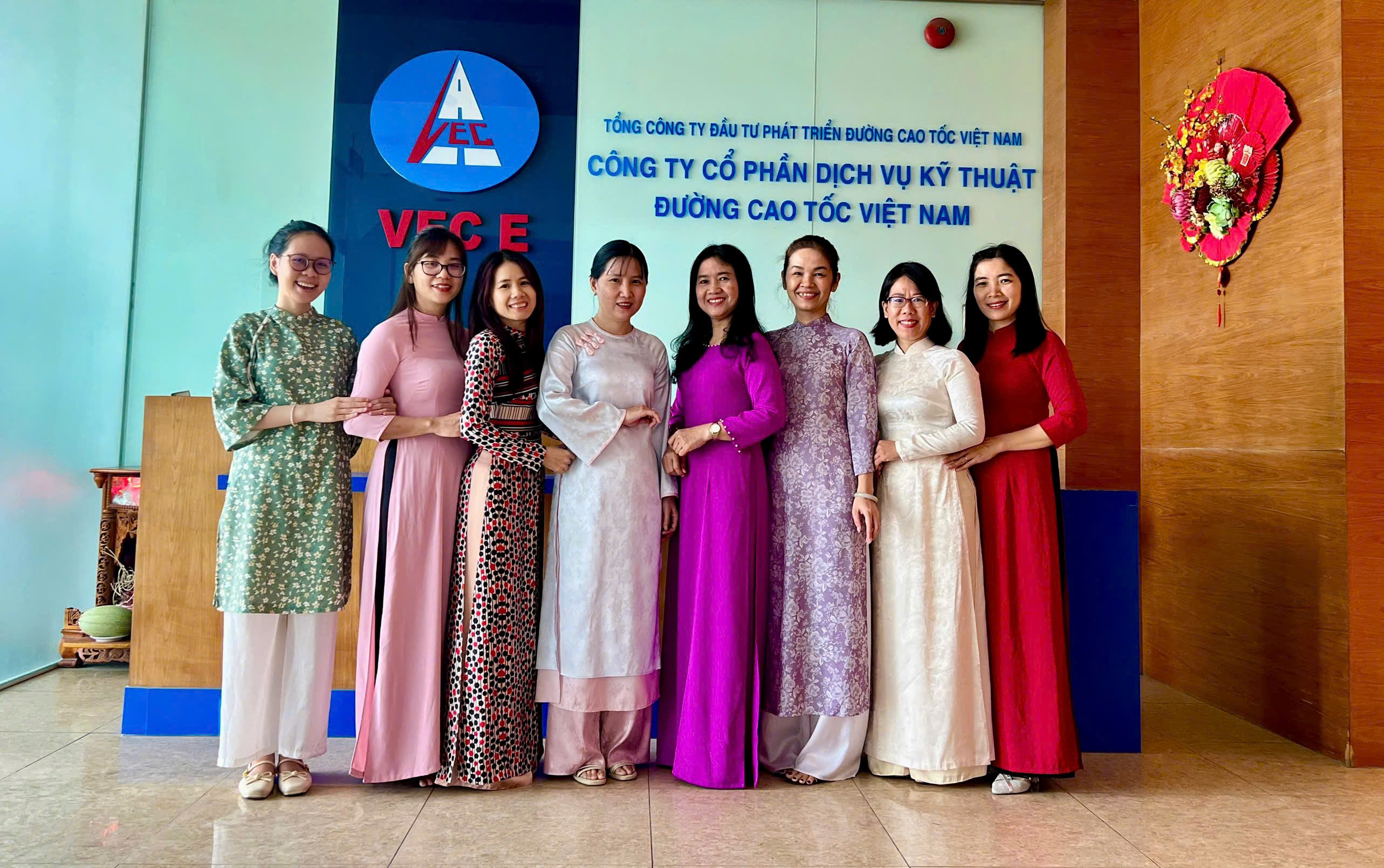 Đặc biệt, chị em phụ nữ VEC E đã nhiệt tình hưởng ứng “Tuần lễ Áo dài 2026”. Những tà áo dài thướt tha xuất hiện tại nơi làm việc không chỉ tôn vinh vẻ đẹp duyên dáng của người phụ nữ Việt Nam mà còn lan tỏa nét đẹp văn hóa truyền thống, tạo nên luồng sinh khí mới đầy rạng rỡ cho Công ty.