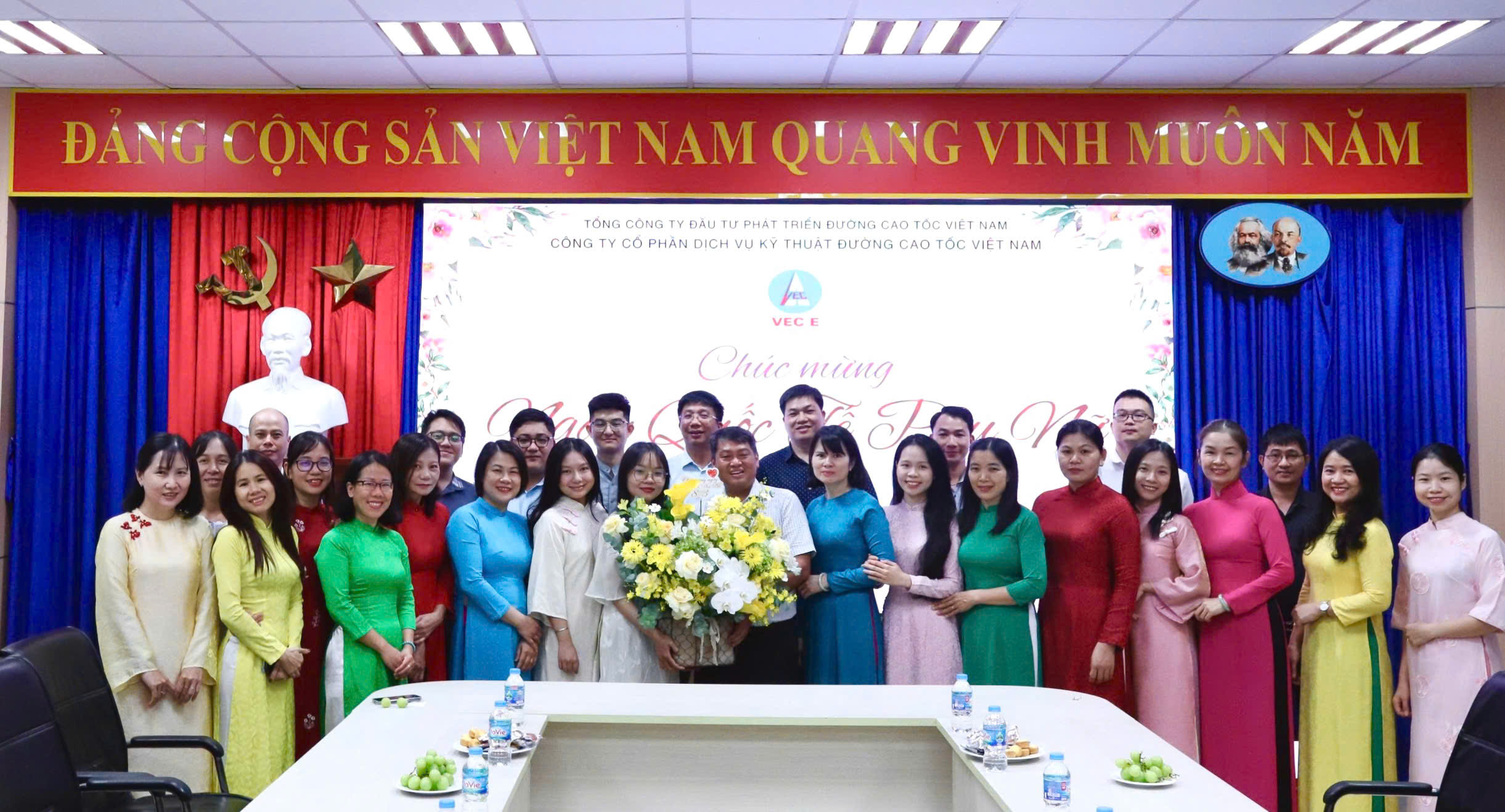 (09/03/2026)Hòa chung không khí phấn khởi kỷ niệm 116 năm Ngày Quốc tế Phụ nữ (8/3/1910 - 8/3/2026) và 1986 năm Khởi nghĩa Hai Bà Trưng, hưởng ứng phong trào từ Công đoàn Tổng công ty Đầu tư phát triển đường cao tốc Việt Nam (VEC), Lãnh đạo Công ty và Công đoàn Công ty VEC E đã tổ chức các hoạt động đầy ý nghĩa dành riêng cho các nữ cán bộ, nhân viên tại đơn vị. Tại trụ sở Công ty và trên các dự án/công trình, Công đoàn VEC E đã trực tiếp thăm hỏi, động viên và trao tặng những đóa hoa tươi thắm cùng những lời chúc tốt đẹp nhất đến "những bóng hồng" đang miệt mài cống hiến cho sự thận tiện và an toàn của những chuyến xe.